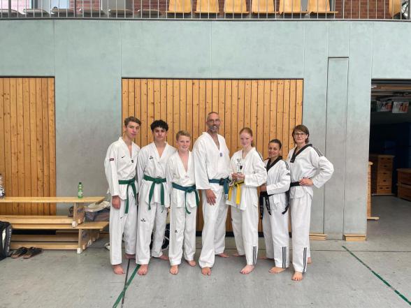 Am Sonntag, den 31. August 2025 nahmen Gülden Eken, Nicole Küpper, Susi Peters und Herbert Frost von der S.U.A zusammen mit 4 weiteren SportlerInnen vom PSV Essen und Rumelner TV an einer DAN-Prüfung teil.